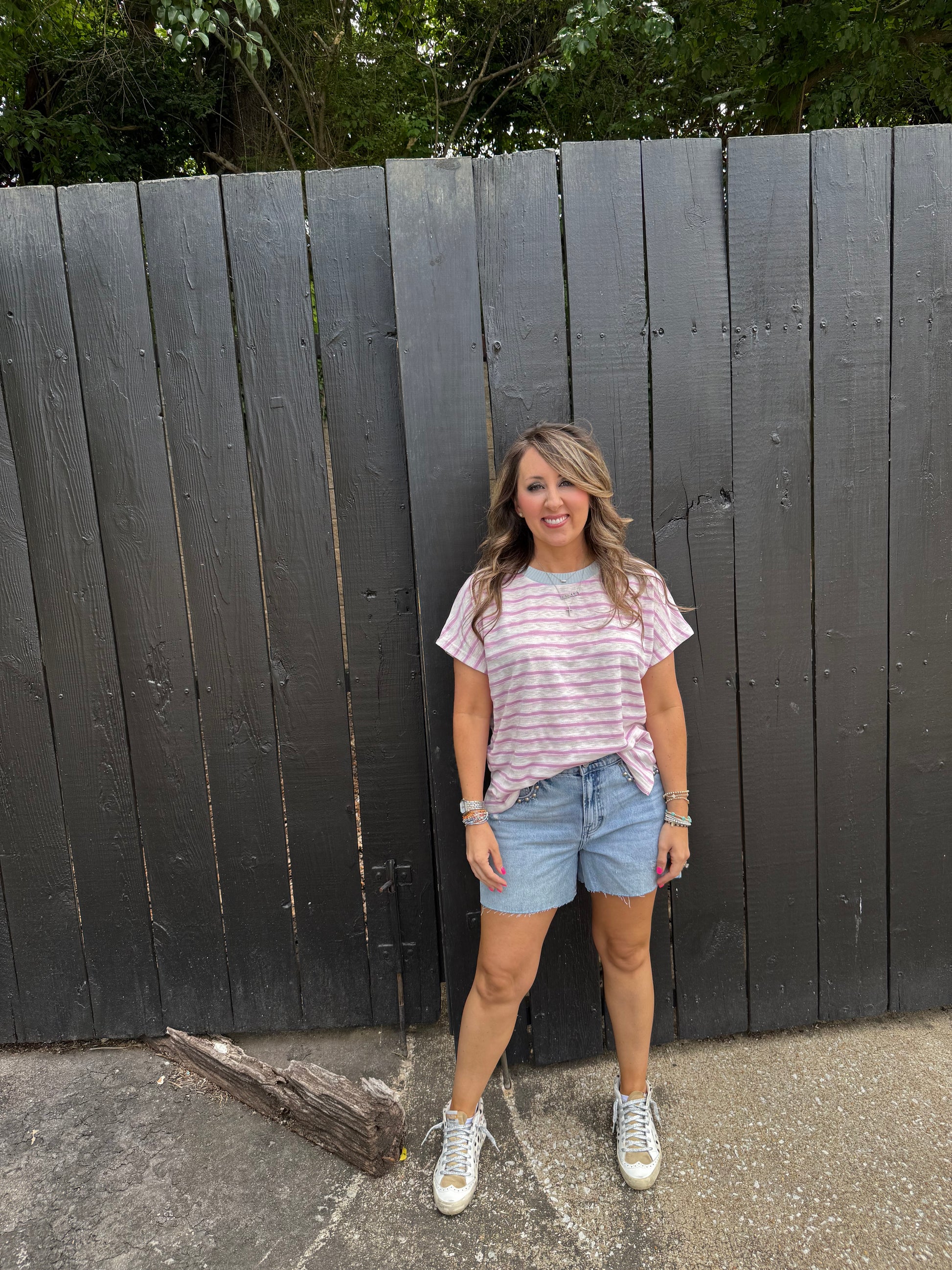 Kitty Stripe Lilac Top