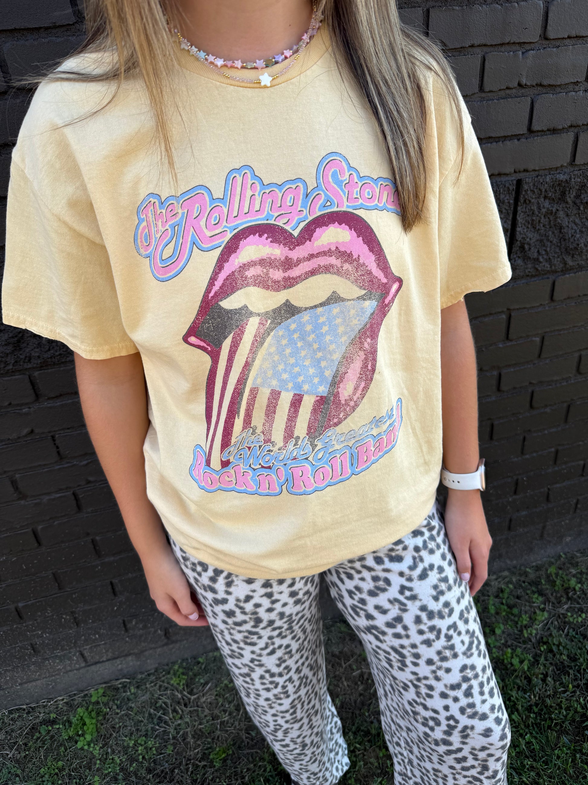 Rolling Stones Yellow Thrifted Tee